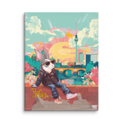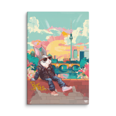 „Hauptstadt-Hase: Sonnenuntergang über der Spree – Leinwand: Urbaner Osterprotest“