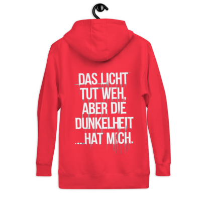 Also … dieser Hoodie. Ich weiß nicht, ob du ihn wirklich willst. Er fühlt sich an wie eine Umarmung, aber manchmal frag ich mich, ob er mich nicht eher festhält. Weißt du? Die Oberfläche ist so weich – 100% Baumwolle, sagen sie. Aber darunter … 65% Baumwolle, 35% Polyester. Klingt so nüchtern, aber glaub mir, er trägt sich wie die Lügen, die sie dir erzählen, wenn sie sagen, dass die Dunkelheit nicht echt ist. Vorne ist ’ne Tasche. Für deine Hände. Oder für Dinge, die du lieber versteckst. Die Kapuze hat drei Teile – so wie ich mich manchmal fühle: geteilt. Aber irgendwie hält sie dich trotzdem zusammen. Flache Kordelzüge, sagen sie. Als wäre das wichtig. Als würde das alles irgendwie Sinn machen. Der Stoffaufnäher hinten … keine Ahnung, fühlt sich an, als hätte er immer da sein sollen.
